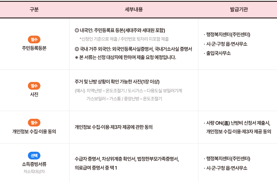 사랑온난방비 신청기간 및 대상 안내