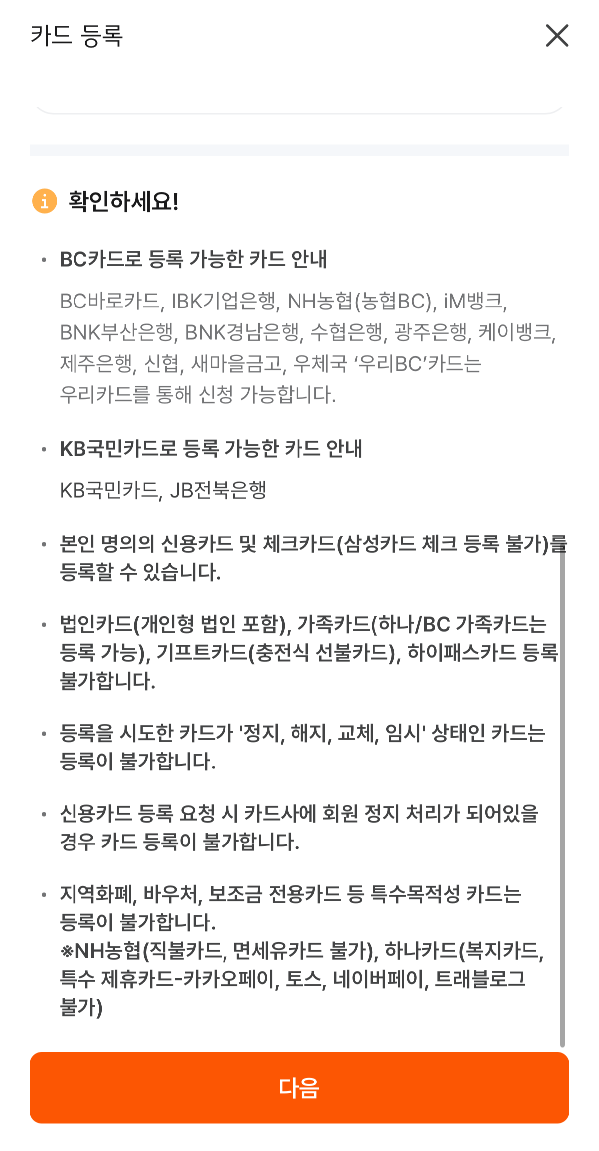 반대로 대형마트, 온라인 쇼핑몰, 백화점, 창고형 할인점 등은 여전히 결제가 불가능합니다.